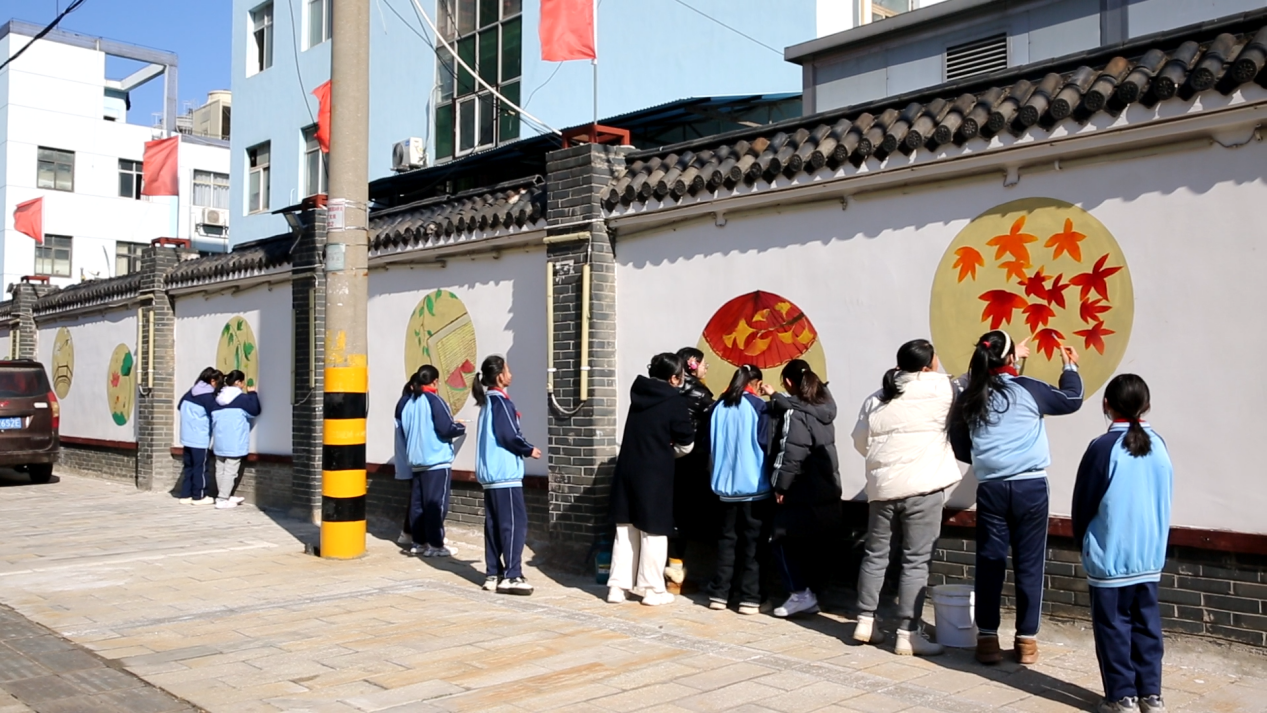 行走的城市,是无声的第三位导师。这场街头墙绘实践,打破了教室的围墙,让学生在真实的城市空间里感知美、创造美。路过的市民驻足观赏,不时与孩子们交流节气知识,文明的互动、文化的共鸣,让这幅墙绘不仅是视觉风景,更成为连接校园与城市的文化纽带。