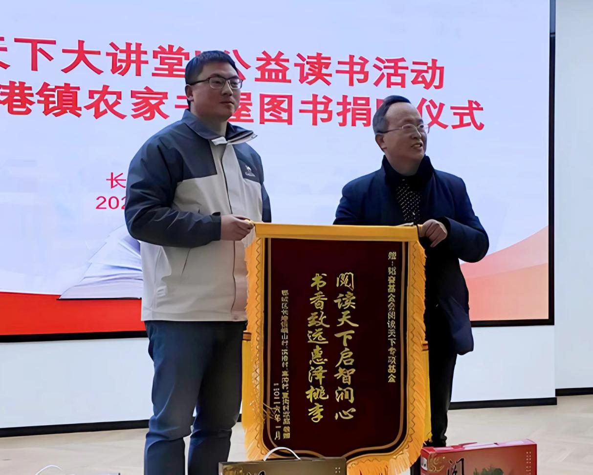 长港镇向阅读天下专项基金管理办公室代表赠送锦旗