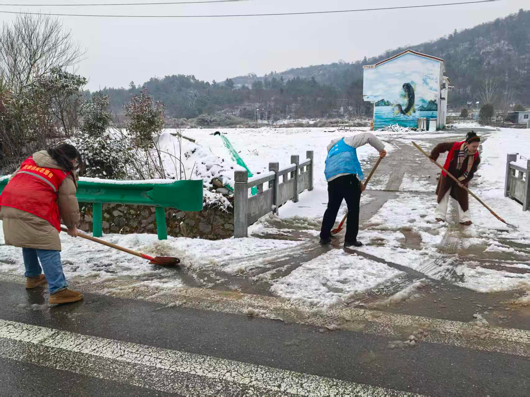 平安产险鄂州中支驻汀祖镇董胜村工作队和村“两委”干部一起,积极应对极端天气,扫雪除冰,走访看望孤寡老人和特殊困难群体,宣传用火、用电、用气安全常识。