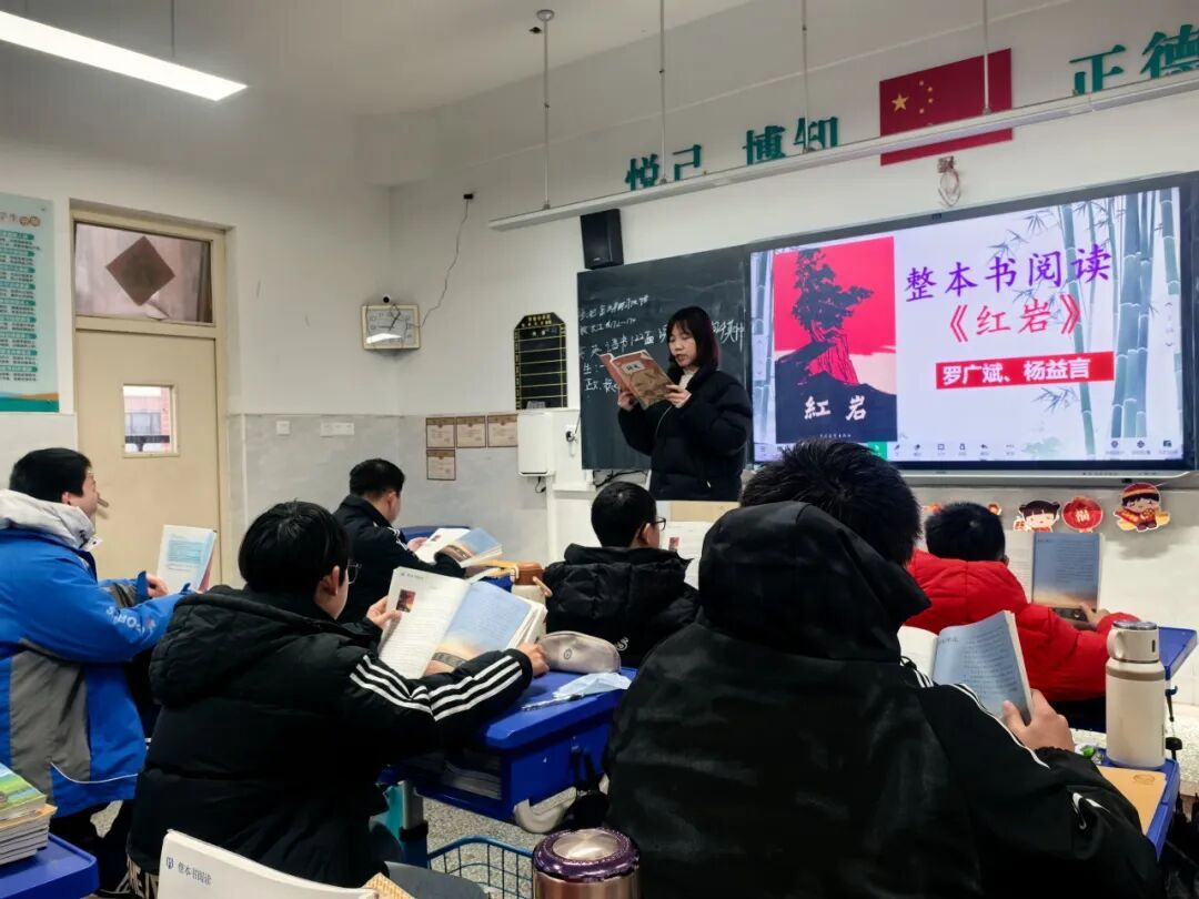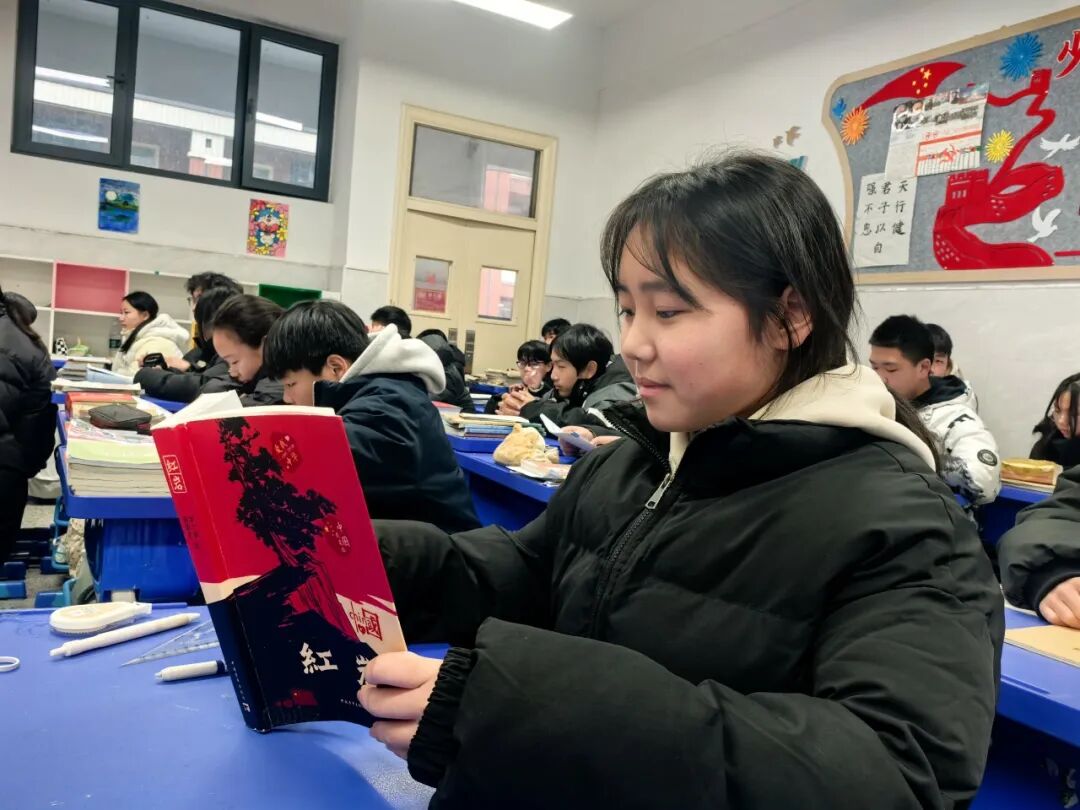 活动启动之初,各年级结合新课标选定专属书目:七年级在《朝花夕拾》的温情回望与《西游记》的奇幻历险中,开启阅读启蒙;八年级循着《红星照耀中国》的足迹,在《红岩》的坚贞信仰里读懂理想的重量;九年级则在《简·爱》的人格觉醒与《水浒传》的江湖争议中,探索经典与现实的共振。师生共同沉潜书页,摒弃流于表面的打卡式阅读,在逐字逐句的研读中,为思想生长夯实根基。