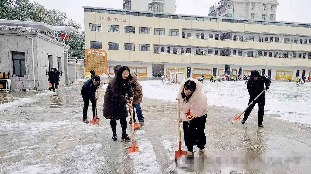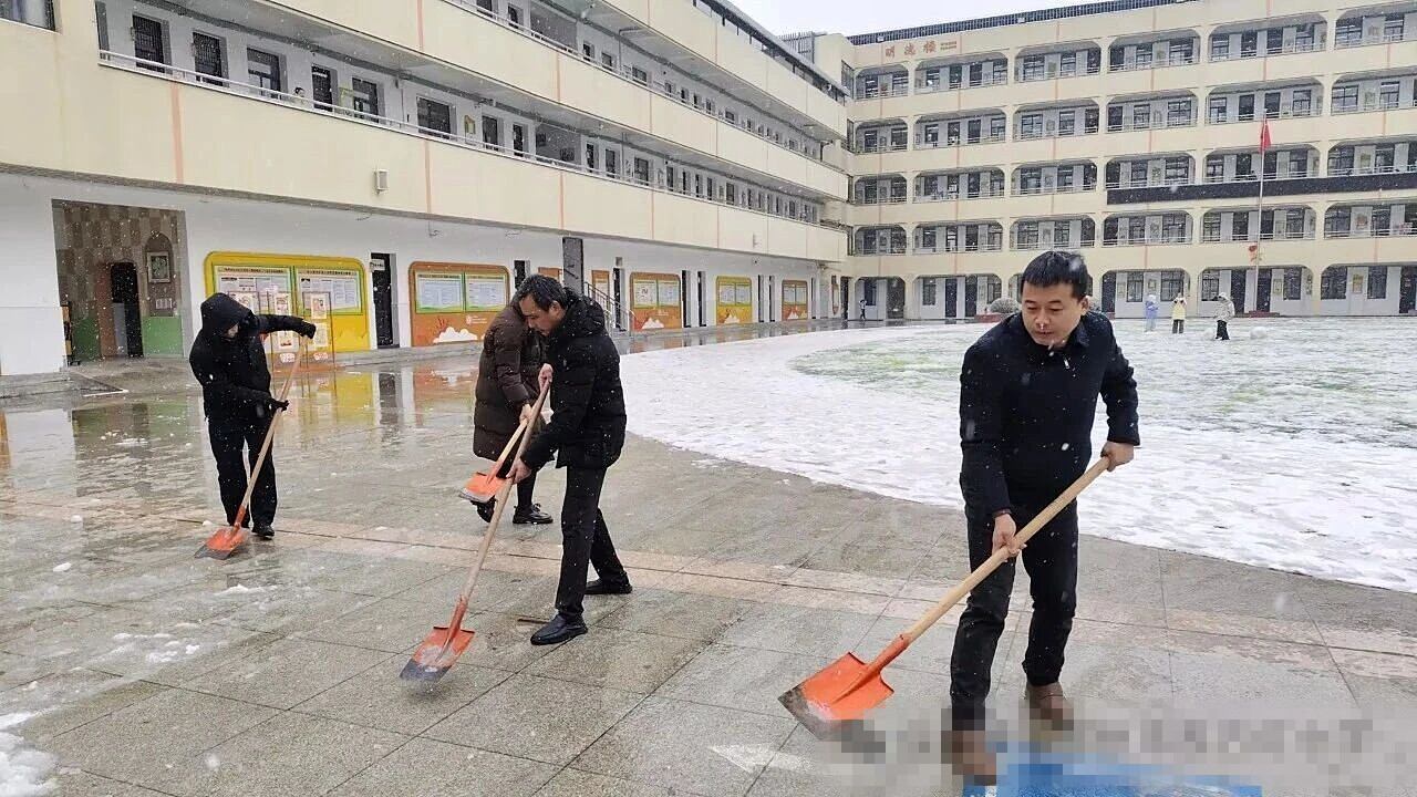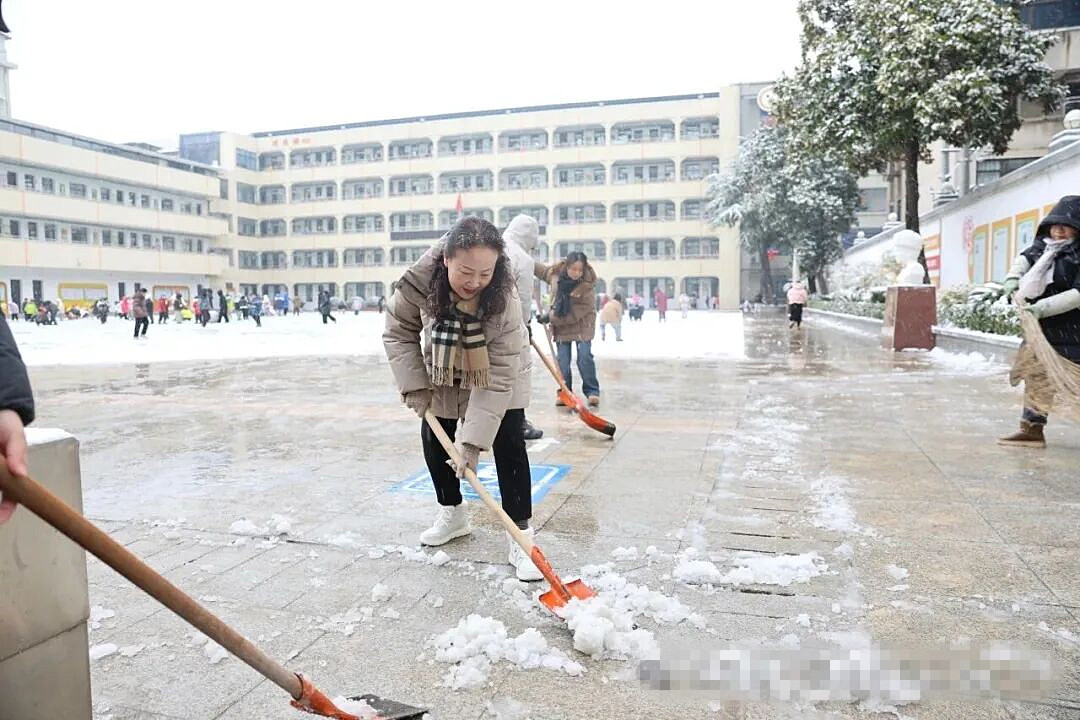 在校领导的示范引领下,全体教职工迅速集结成斗志昂扬的 “除雪先锋队”。党员教师亮明身份、冲锋在前,中年教师勇挑重担、迎难而上,老教师不甘示弱、奋勇争先,年轻教师活力满满、干劲十足。