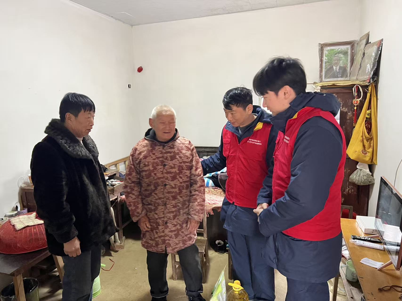 走访慰问过程中,“楚天星火”湖北电力共产党员服务队队员与村“两委”、驻村工作队一同,分组前往各村湾,为困难老党员、孤寡老人、特困人员等家庭送去大米、食用油等生活物资。“杨阿姨,我们来看您啦!”在村民杨阿姨家中,队员们与她亲切拉家常,细致询问身体健康、冬季取暖、用电安全等情况,耐心讲解冬季安全用电注意事项,并帮助检查家中用电线路,叮嘱其注意保暖、安全过冬。