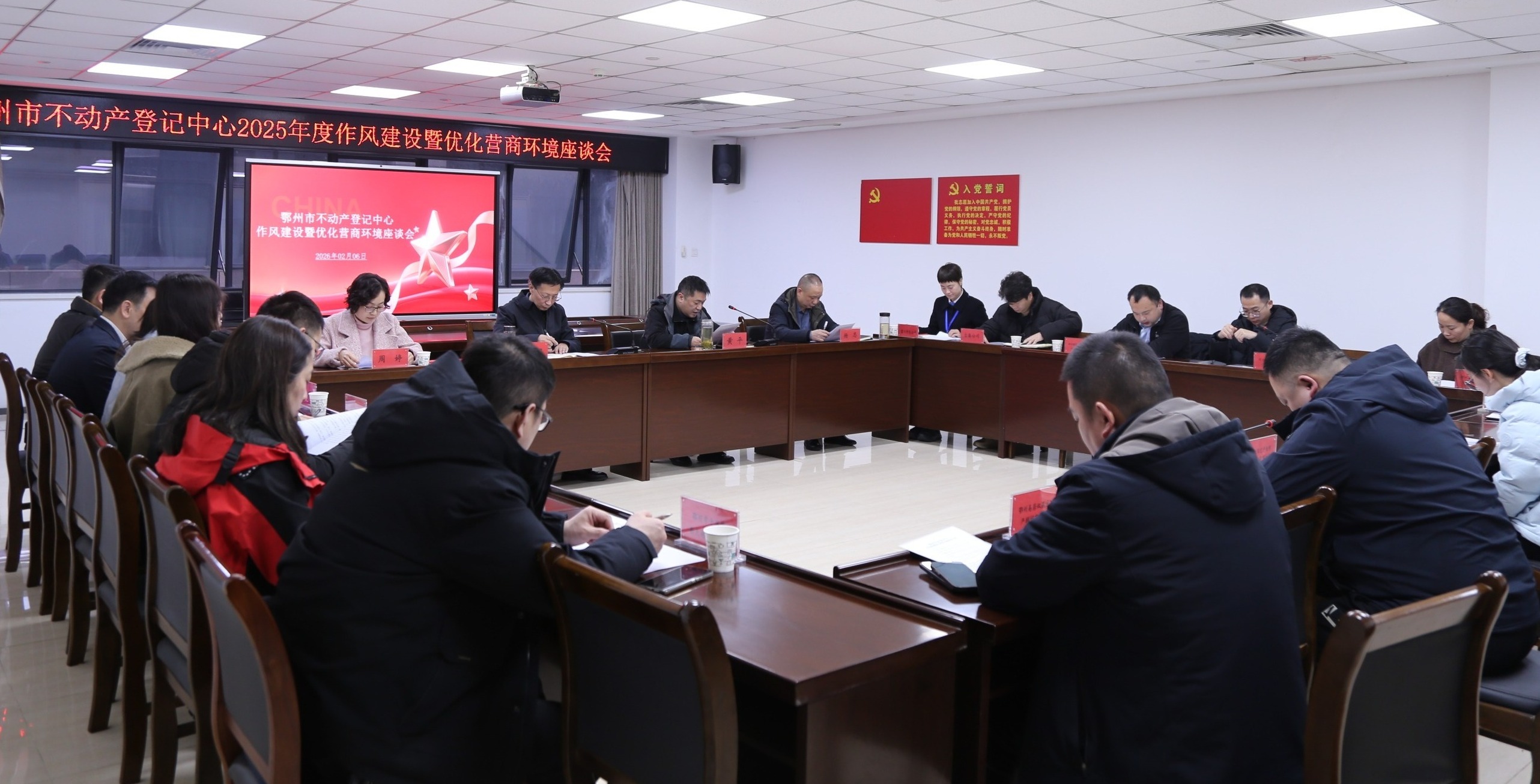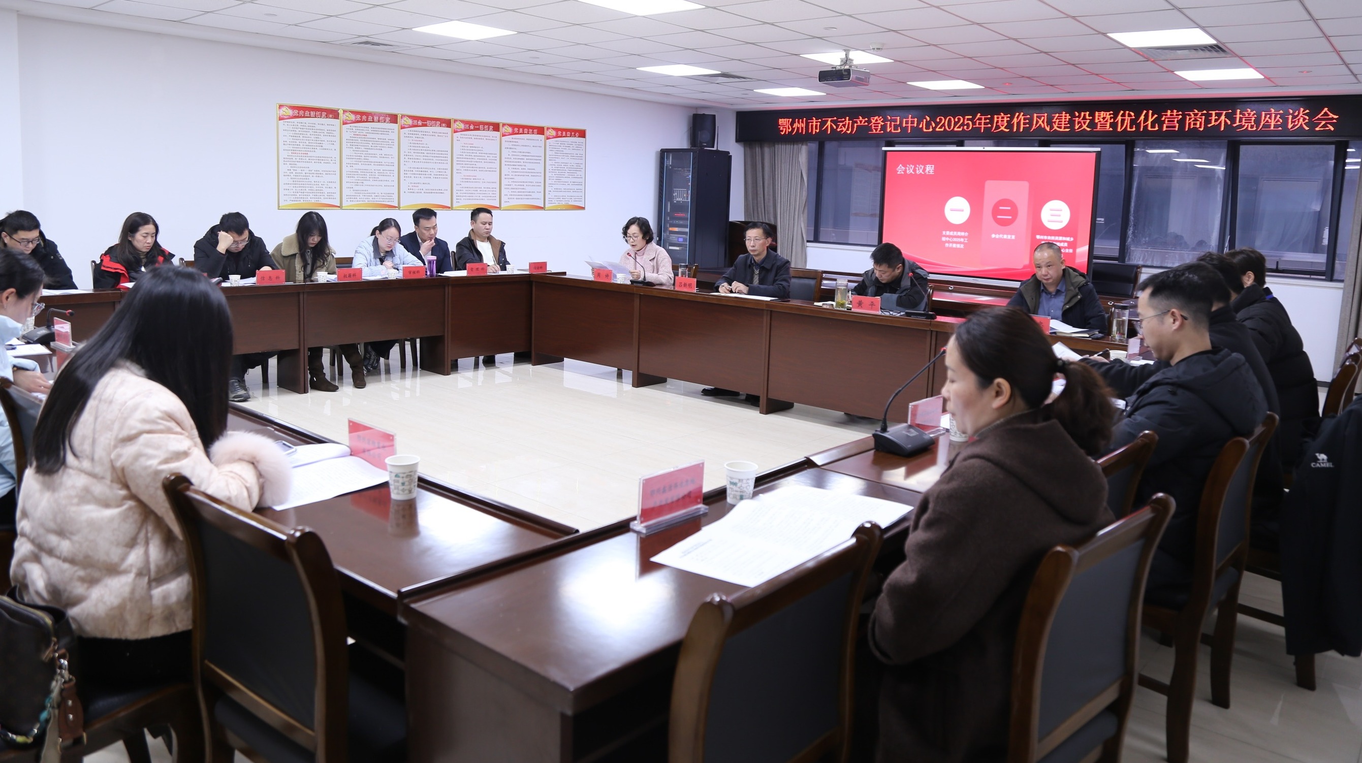 为持续优化不动产登记营商环境,提升便民利企服务质量,2月6日,鄂州市不动产登记中心组织召开了一场别开生面的作风建设暨优化营商环境座谈会。邀请全市金融机构、企业、中介机构代表,围绕“优化营商环境、提升服务质效”主题,面对面倾听诉求,实打实研讨解决方案,凝聚服务提升合力,进一步提升人民群众的获得感、幸福感、安全感。