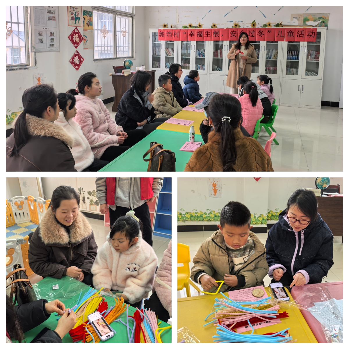 活动现场,爱心妈妈们提前准备了彩色毛线、环保卡纸、安全剪刀等手工材料,以耐心细致的指导,带领孩子们一步步完成爱心挂件、树叶造型的编织与制作,共同将饱含心意的作品组装成象征温暖与希望的“幸福树”。孩子们专注投入的神情、创意十足的作品,让原本安静的活动室充满欢声笑语。