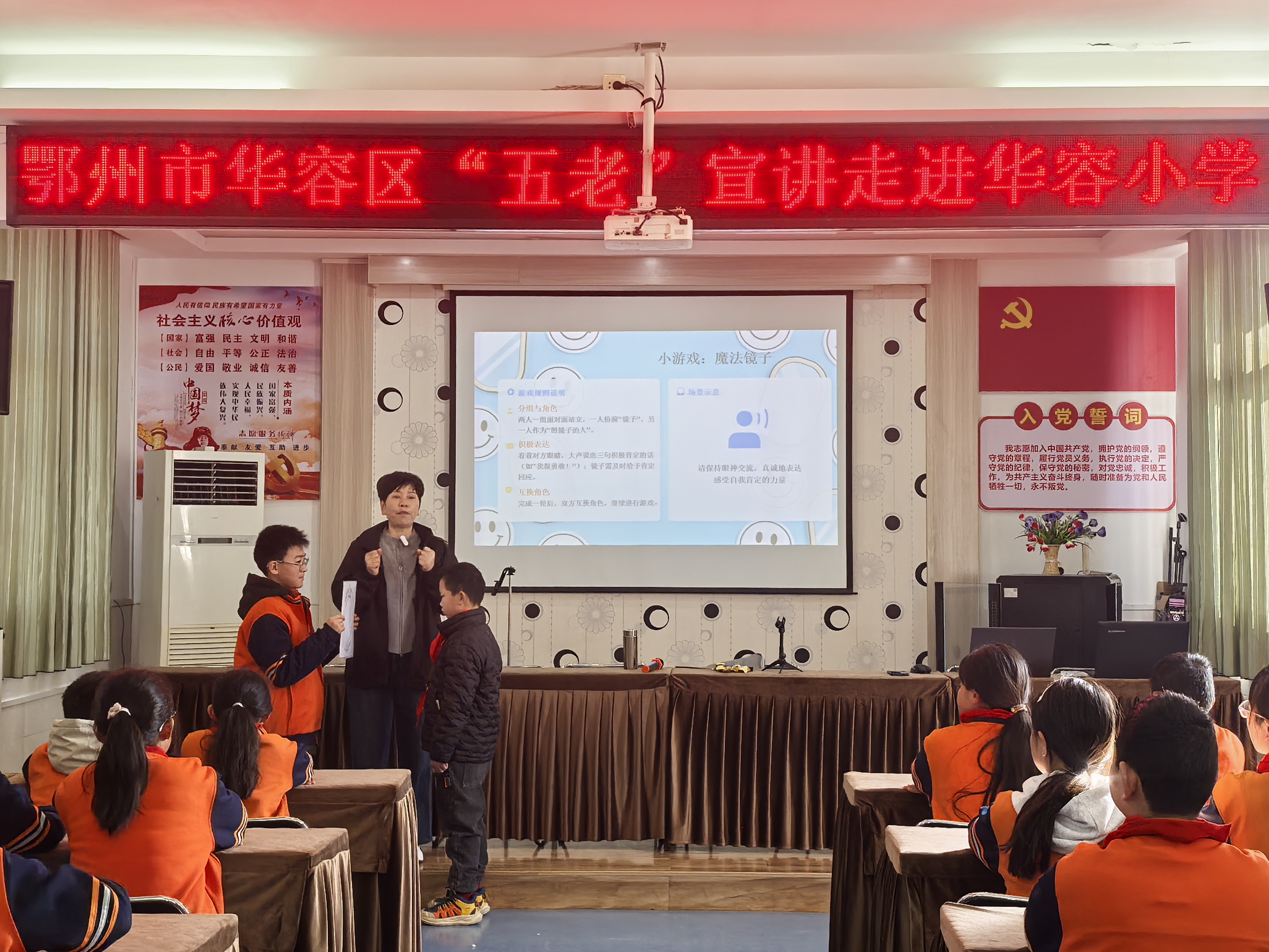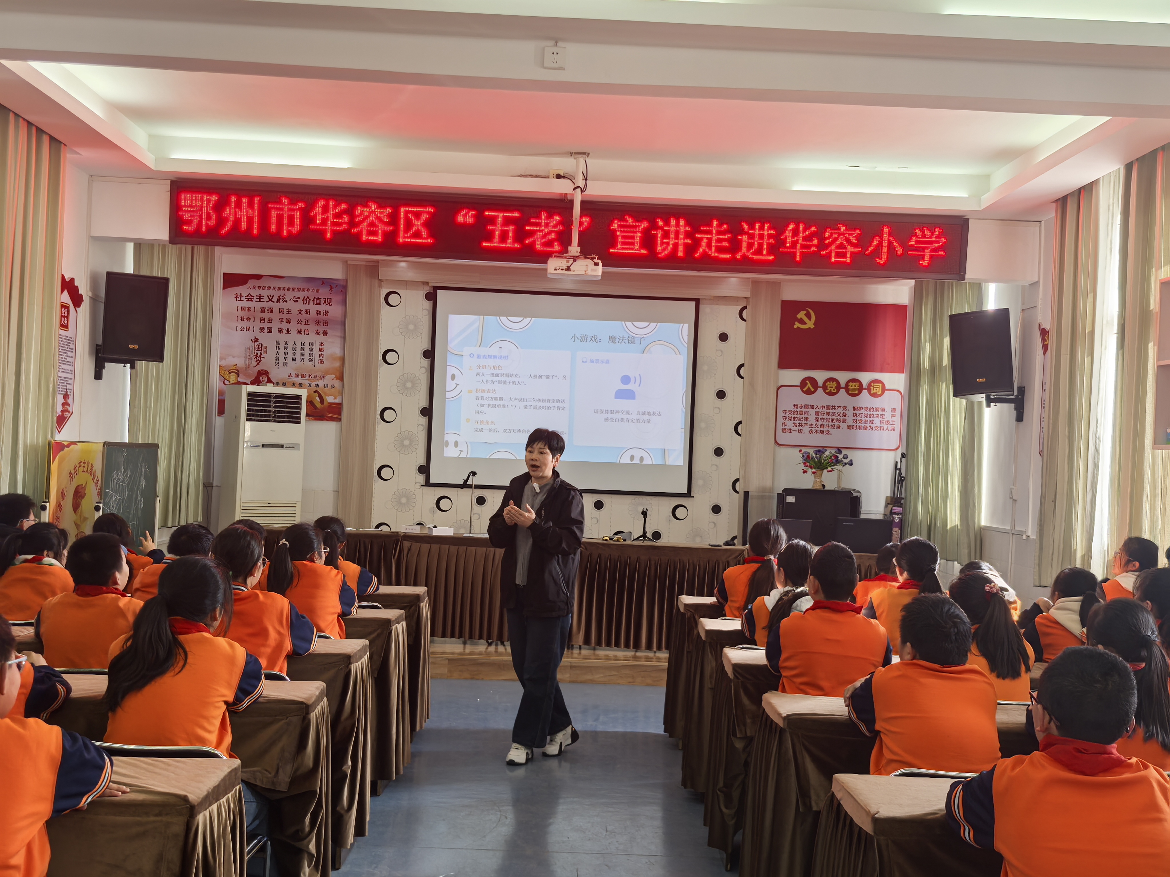 为深入落实未成年人思想道德建设要求,充分发挥“五老”人员的榜样引领作用,助力学生树立积极向上的人生信念,近日,华容区华容小学特邀请市“五老”宣讲团成员方芳老师,走进校园开展《你会成为自己相信的样子》励志主题宣讲活动,为五六年级学生带来了一堂生动的心灵成长课。