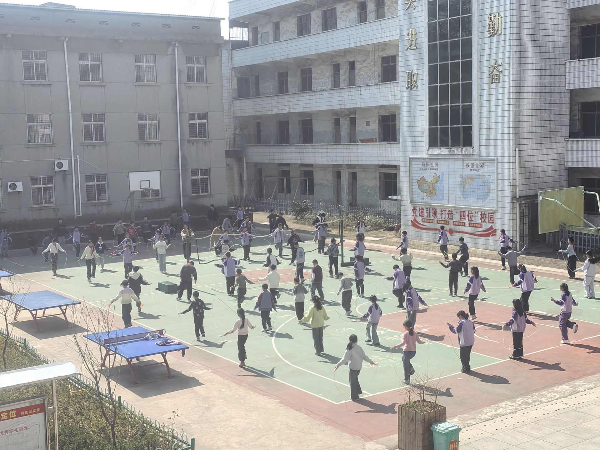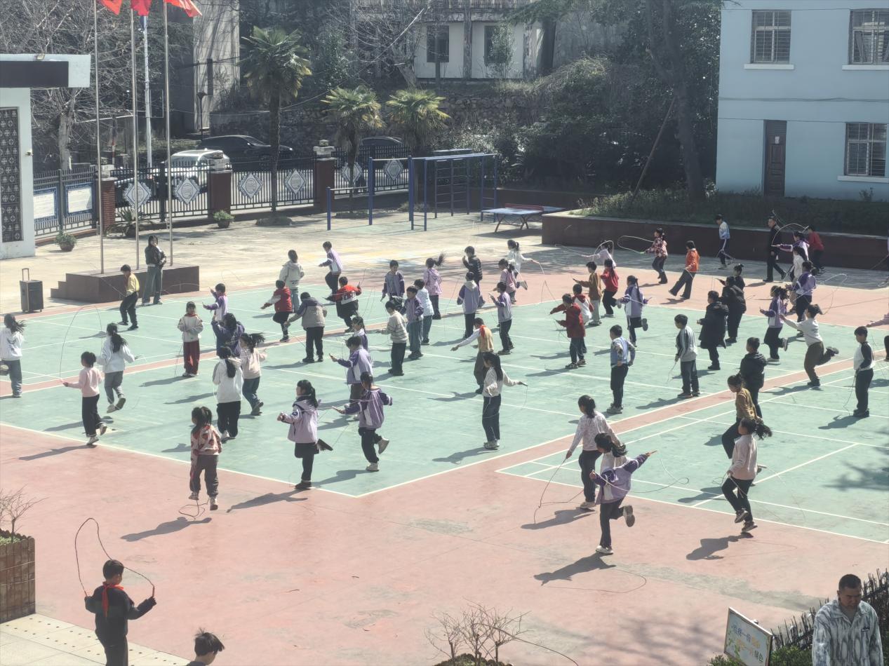 为深入贯彻国家心理健康教育与阳光体育两小时工作要求,落实“健康第一、身心同育”教育理念,鄂城区泽林镇塔桥小学创新大课间活动形式,全面推行全员花样跳绳特色项目,以一根彩绳为纽带,让运动赋能成长,让阳光浸润心灵,打造有温度、有活力、有内涵的校园体育文化品牌。