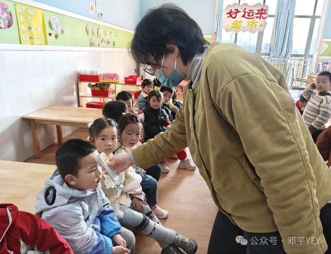 该园严格落实晨午检制度,细致排查孩子体温、皮疹、精神状态等,发现异常及时隔离并联系家长。