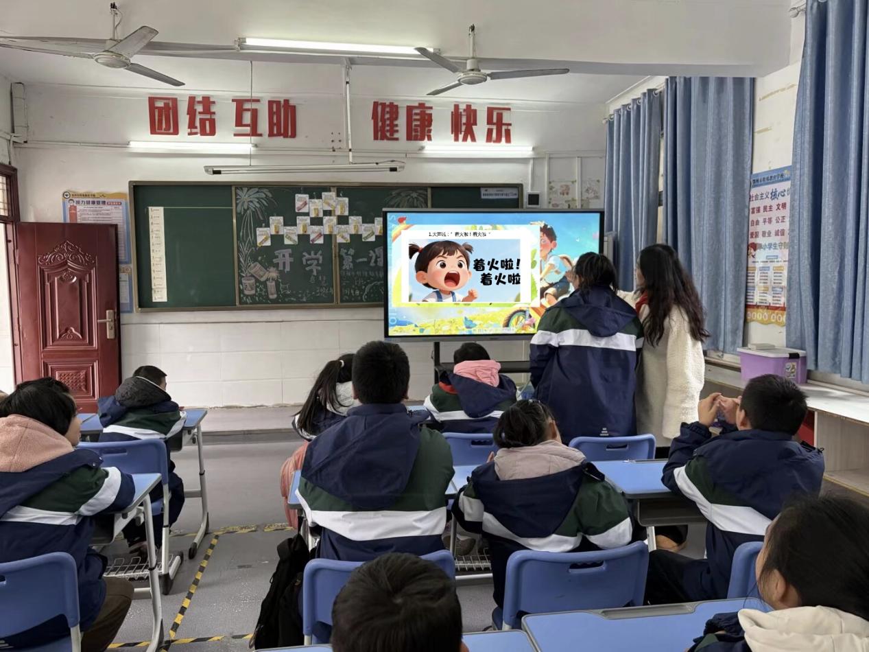 开学伊始,学校以班级为单位开展消防安全主题教育活动,开启春季消防安全“第一课”。课堂上,教师通过图文讲解、趣味问答、情景模拟等方式,围绕“电动自行车入户充电的危害”“火灾后如何科学逃生”“预防一氧化碳中毒”等核心话题展开教学,用通俗易懂的语言讲解消防安全知识,让学生在轻松的氛围中认识火灾隐患、学习自救方法。同时,引导学生分享自己对消防安全的理解,将安全意识根植于心,为后续系列消防工作开展奠定坚实基础。