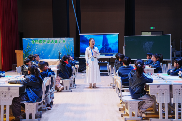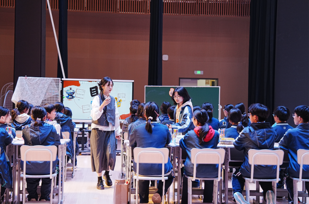 美术教学研讨会以“跨学科研讨单元课程设计”为主题,在华宜实验学校行。两节优秀的示范课分别由鄂城区长港中学刘欣怡、鄂城区泽林实验小学徐芬带来。其中初中的《非遗文化潮起来》一课,通过非遗雕花剪纸的纹样特点,引导学生用审美的眼光设计生活中的物品,如奶茶杯、团扇、衣帽等,将传统文化与现代生活有机融合,让学生们对非遗文化有了属于自己的创意。小学组的《对称的鱼形》一课,通过AI技术投屏,将海底世界搬到课堂中,启发学生用自己制作的鱼形剪纸来保护海洋环境,让每位学生都种下了保护环境的种子。