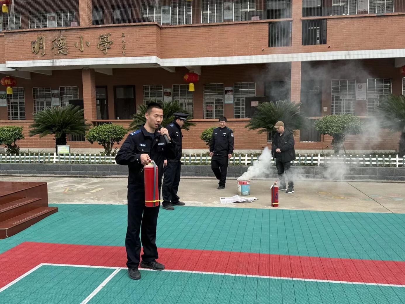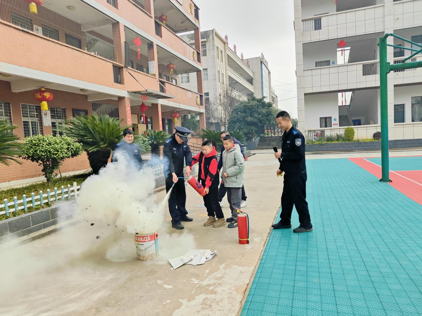 集结完毕后,碧石渡镇派出所民警为师生带来消防安全知识讲座。他结合真实案例讲解火灾危害、预防措施及119报警要点,还现场演示干粉灭火器“一提、二拔、三握、四压”的操作口诀。并邀请学生代表上前实操,亲身体验扑灭初起火灾,进一步提升应急处置能力。