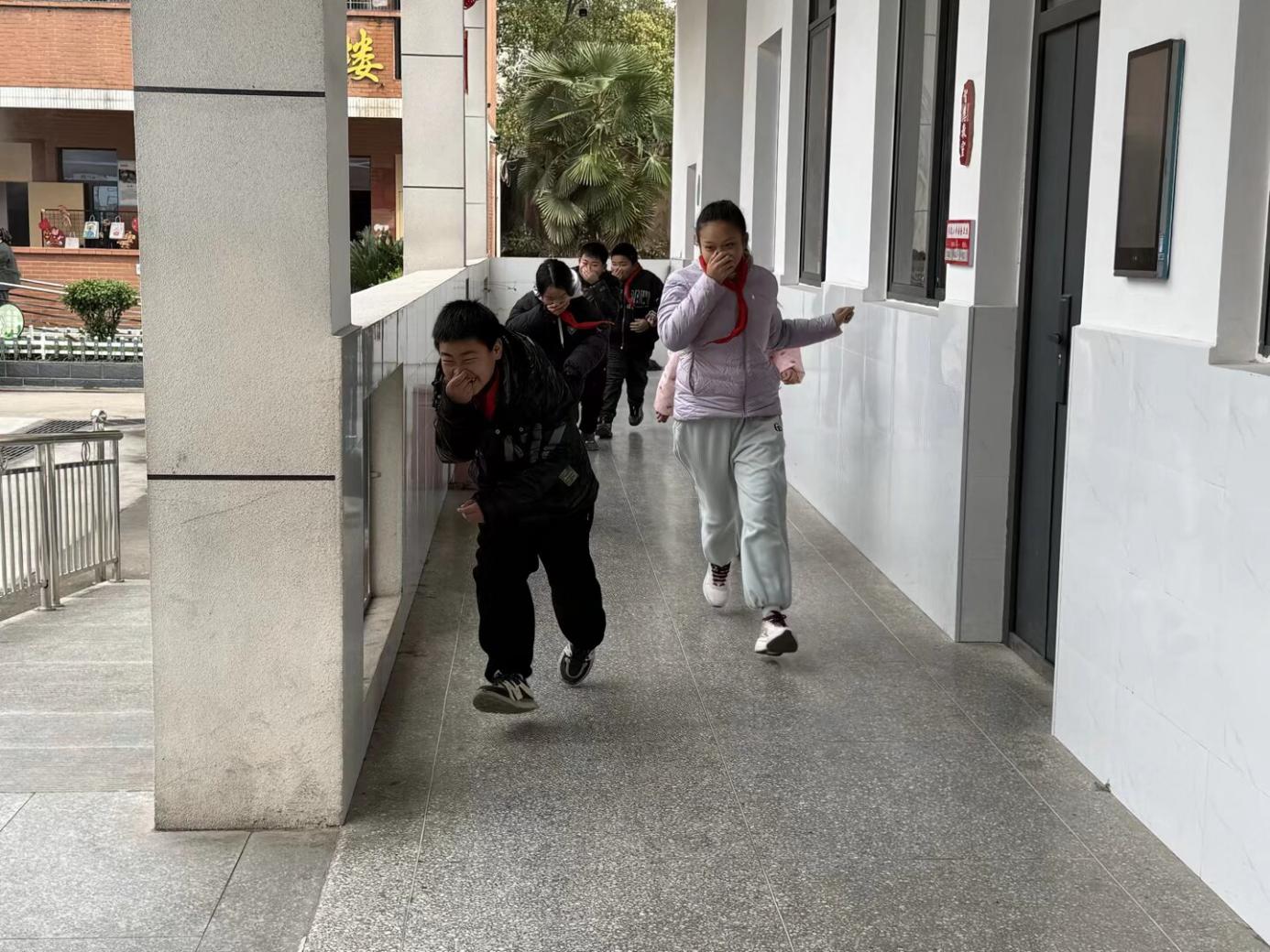 当天上午9时50分,校园内消防警报响起,演练正式开始。各班班主任迅速组织学生用湿毛巾捂住口鼻,保持弯腰低姿,沿着预定疏散路线快速向操场指定区域撤离。
