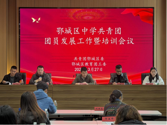 为深入贯彻上级团委关于团员发展工作的部署要求,进一步规范全区中学共青团团员发展程序,严把团员入口关,提升基层团干部业务能力,3月27日,鄂城区中学共青团团员发展工作会议暨培训会在市育才中学召开。共青团鄂城区委书记万小军,鄂城区教育局党组成员何耀云,鄂城区教育团工委书记詹成,团区委干部卢仪及全区各中学共青团组织书记参加会议。