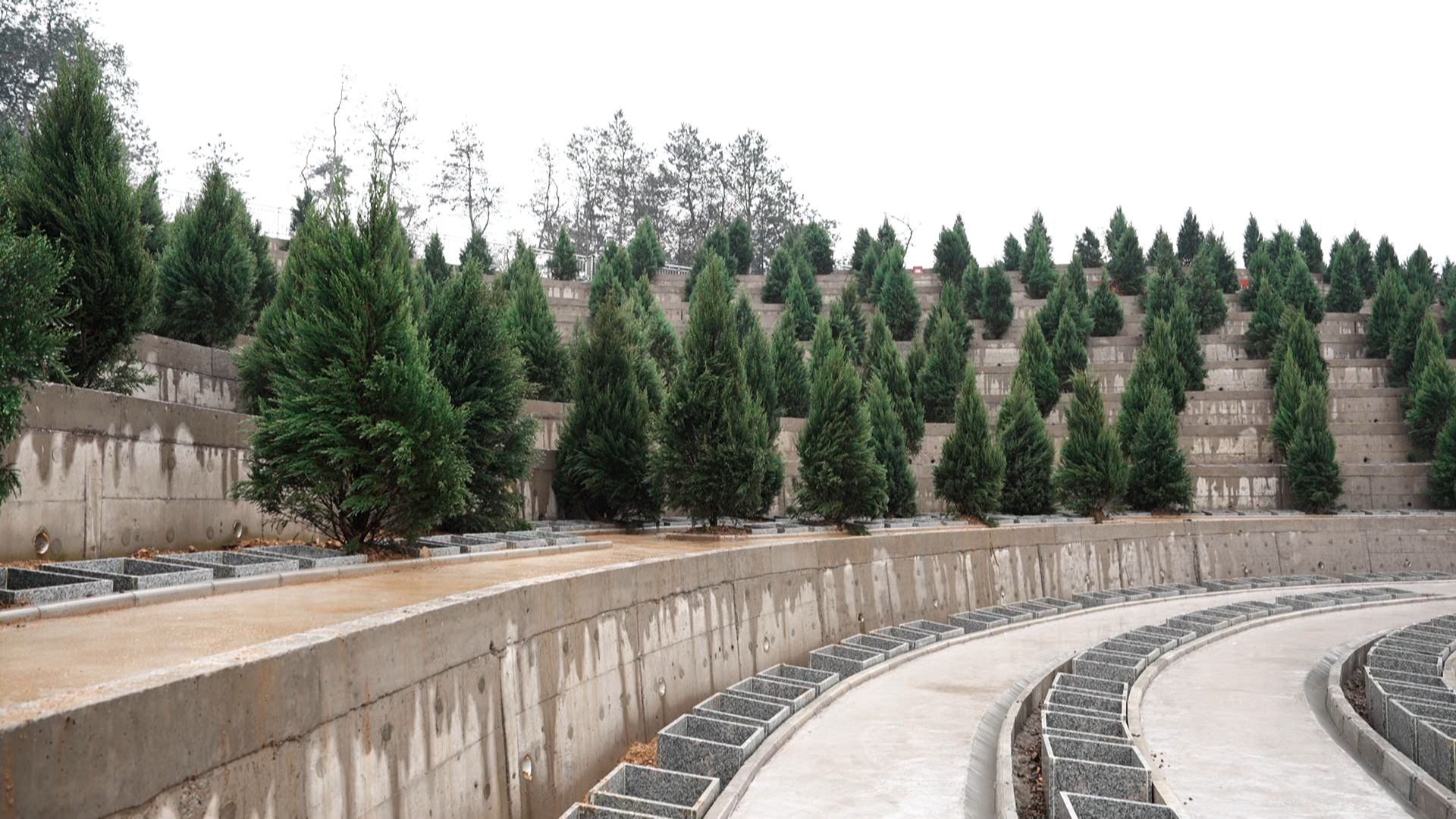 长山生态陵园项目总征用建设用地395.4亩,总建筑面积约5200平方米,绿地率达40.44%。建设内容涵盖生态景观区、墓园区、生态停车区、骨灰寄存区与综合服务区五大功能区域。本次完工的三期1号地块施工内容包括墓穴区建设、生态景观打造及园区道路铺设。为保障清明节前顺利完成施工任务,切实满足群众祭扫需求,项目团队科学制定施工方案,细化节点、合理调配资源,全力推进高效建设。“我们创新采用塑料模板替代传统木模板,有效提升挡土墙混凝土外观质量;采用水密实法施工工艺,有效提高窄小空间台背回填的压实度,全方位确保工程质量符合规范要求、达到设计标准。”项目生产副经理丁玉乾说道。