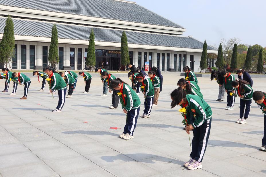 活动当日,阳光微洒,松柏苍翠。少先队员代表们身着整洁校服,佩戴鲜艳红领巾,怀着无比崇敬的心情列队抵达鄂州烈士纪念园。在庄严肃穆的氛围中,活动正式拉开帷幕。全体人员肃立默哀,低头致敬,缅怀先烈为民族独立、人民解放抛头颅、洒热血的英勇壮举,默哀结束后,少先队员代表们齐声高唱《中华人民共和国国歌》和《我们是共产主义接班人》,嘹亮的歌声在纪念碑上空回荡,传递着少年一代传承红色精神的坚定决心。
