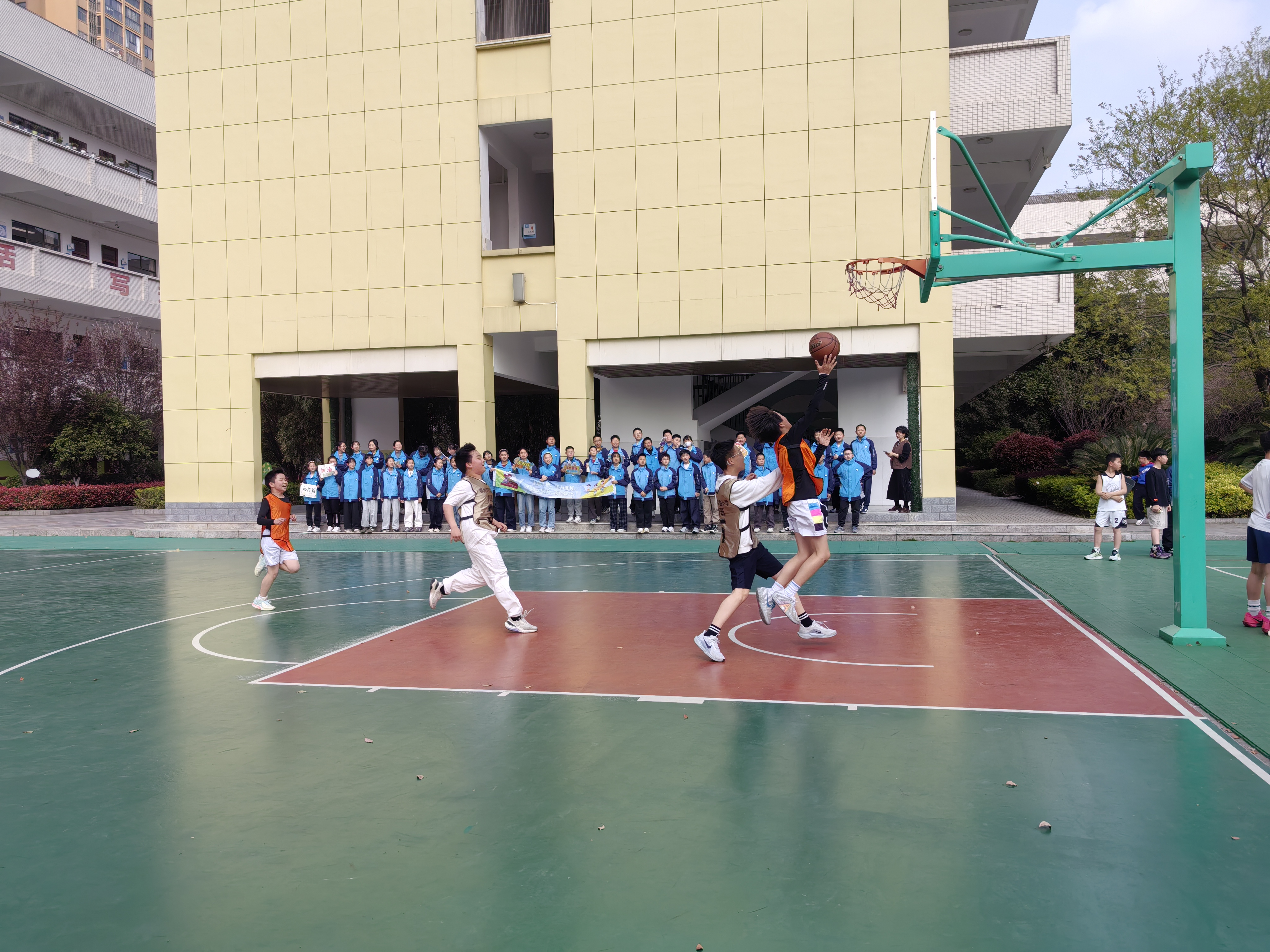 绿茵场上,小球员们带球突破、默契传球,终场哨响时相拥庆祝;篮球架下,少年们三步上篮、精准投篮,场边啦啦队的呐喊声响彻云霄……3月27日,市实验小学“班级足球超级联赛”(以下简称“班超”)与班级篮球对抗赛正如火如荼进行,成为校园里一道充满活力的风景线。