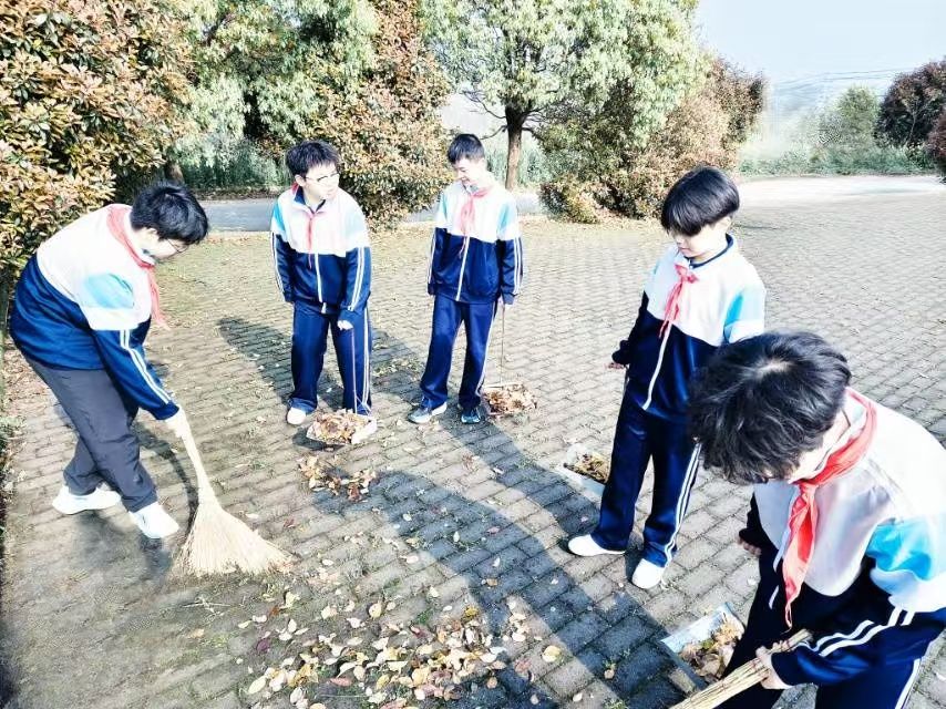 抵达目的地后,同学们率先开展志愿服务活动,拿起清扫工具,分工协作、互帮互助,仔细清理程正瀛故居广场的落叶、杂物与边角卫生。大家俯身劳作,用心守护英烈安息之地,以干净整洁的环境致敬革命先辈,用朴素真诚的劳动,表达对英烈的崇敬与感恩。