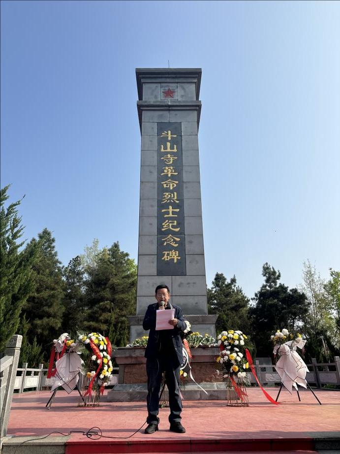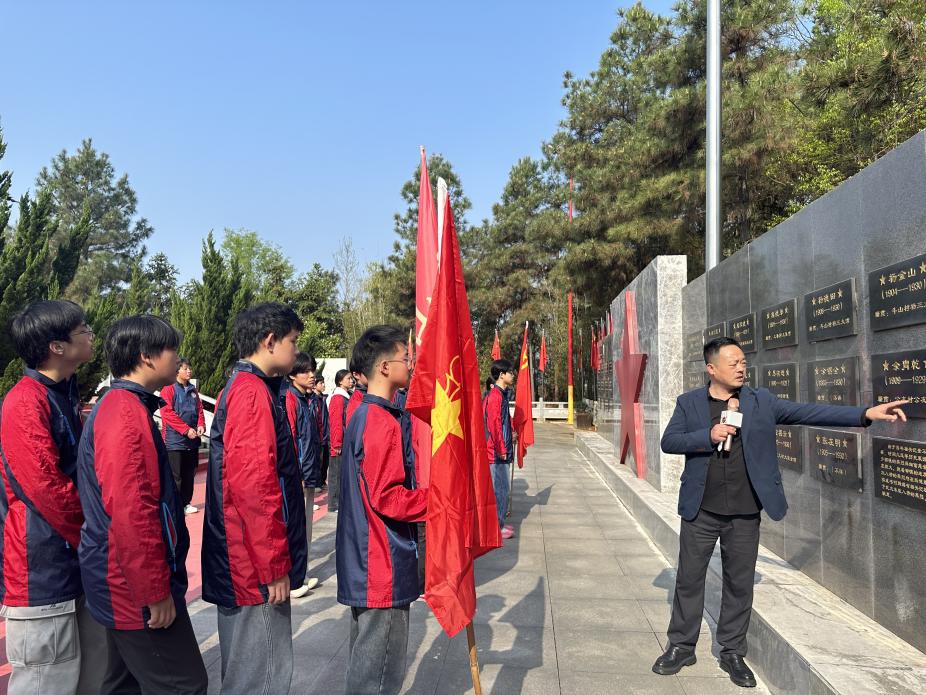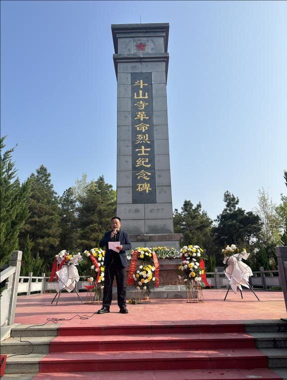 仪式结束后,张红兵校长为同学们现场讲解斗山寺革命烈士的英雄事迹,生动讲述了108位烈士为革命事业英勇献身的悲壮历史,带领大家重温那段烽火连天的峥嵘岁月,让同学们深刻感悟革命先辈们坚定的理想信念与大无畏的牺牲精神。