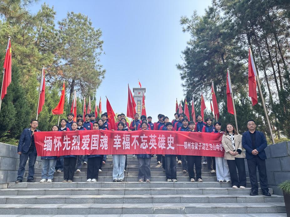 又是一年春草绿,梨花风起正清明。为缅怀革命先烈丰功伟绩,弘扬爱国主义精神,引导广大学生铭记历史、砥砺前行,4月1日,梁子湖区沼山中学组织师生代表前往斗山寺革命烈士陵园,开展"清明祭英烈"主题祭扫活动。余敬清校长、张红兵校长和黄妮主任带领师生代表共同参与,以庄严仪式致敬先烈,以赤诚之心传承红色基因。