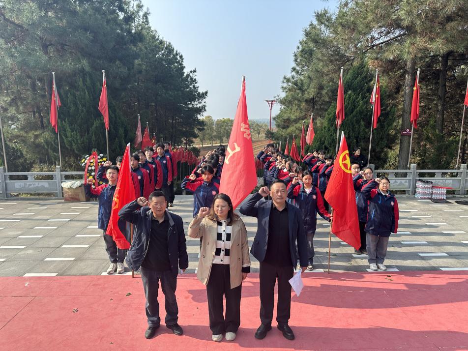 默哀毕,学生代表余燎同学带领全体同学高举右拳,庄严宣誓:“继承先烈遗志,弘扬英烈精神;热爱祖国,勤奋学习;崇德向善,砥砺品格;立志成才,报效祖国!”铿锵有力的誓言在陵园上空久久回荡,彰显着沼中学子传承红色血脉、勇担时代使命的坚定决心。
