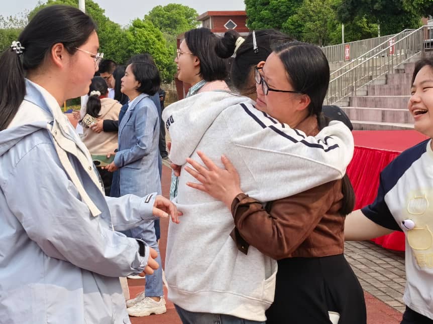 演讲高潮迭起,在杨老师的深情引导下,高三学子们齐声喊出各自的理想大学,声音铿锵有力,尽显青春豪情;班主任们逐一送上暖心寄语,字字饱含期许与鼓励。最后,学子们与班主任深情拥抱,在温馨而激昂的氛围中,将整场活动推向顶点,也在心中埋下“决战高考、不负青春”的坚定誓言。