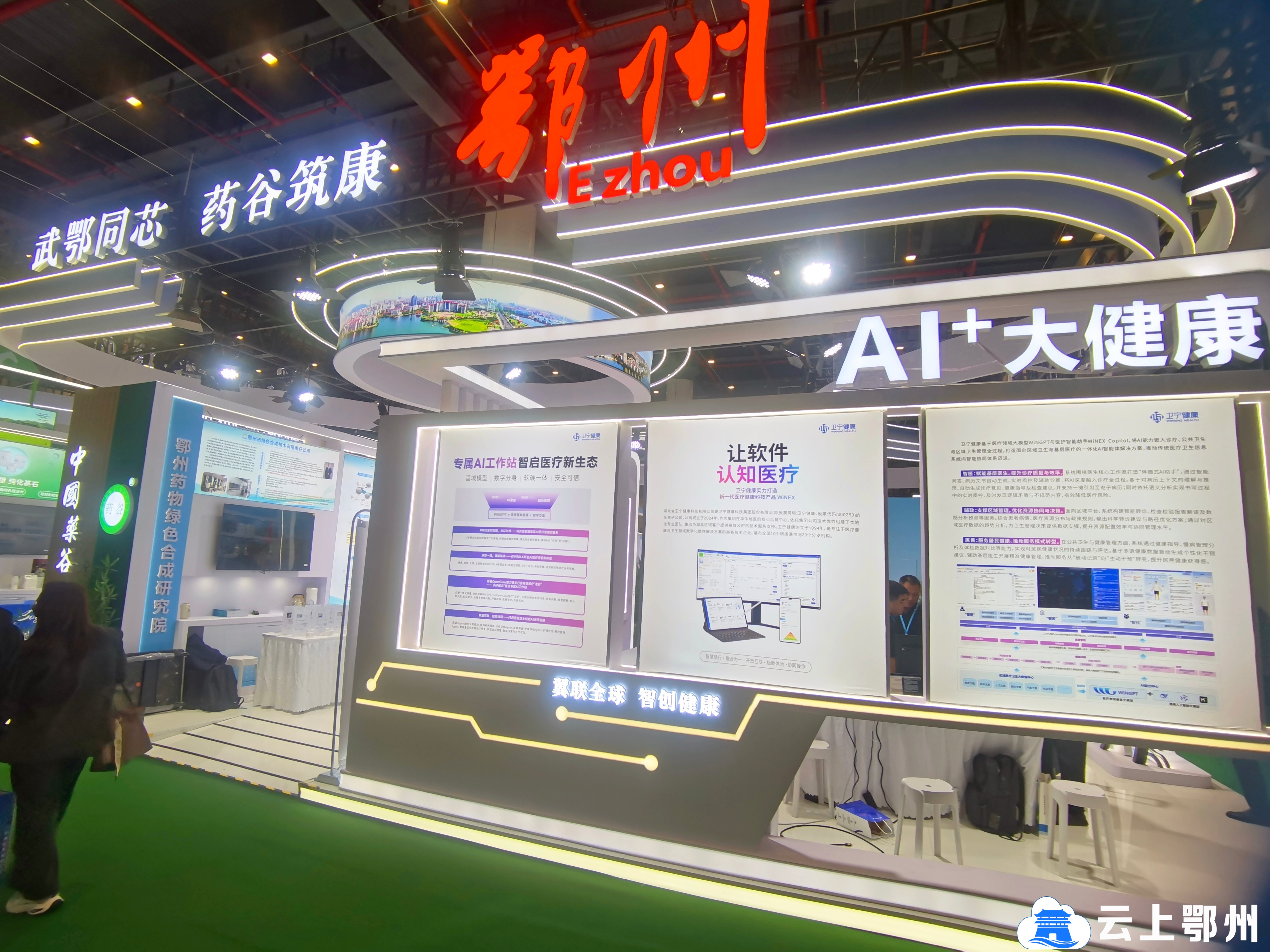 4月8日,在武汉光谷科技会展中心,为期三天的健博会拉开帷幕。步入展区入口的“黄金C位”,一个现代灵动的展馆格外吸睛——这正是以“翼联全球·智创健康”为主题的鄂州馆。在210平方米的空间里,由湖北莲花山人工智能研究院、鄂州药物绿色合成研究院、市中医医院等鄂州10多家单位带来的“黑科技”与创新成果,为参观者推开了一扇通往未来健康生活的大门。
