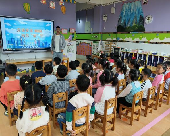 大班班级主题活动聚焦“安全宣讲+实践表达”,孩子们化身小小交通安全宣传员,自信饱满地朗诵交通安全儿歌、讲述日常交通规则。