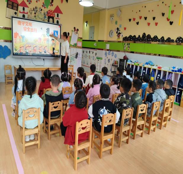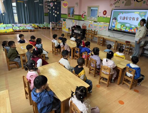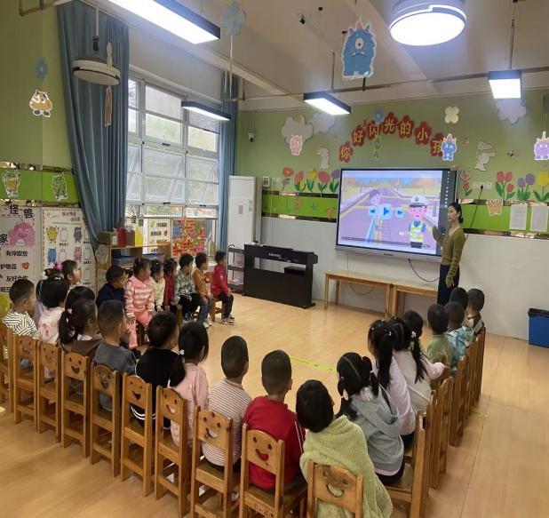 在老师们的带领下,各班通过趣味儿歌、动画科普、交通标志认知、情景模拟游戏等多种形式,带领宝贝们认识红绿灯、斑马线、注意儿童等常见交通标志,牢记“红灯停、绿灯行、黄灯亮了等一等”的安全口诀。