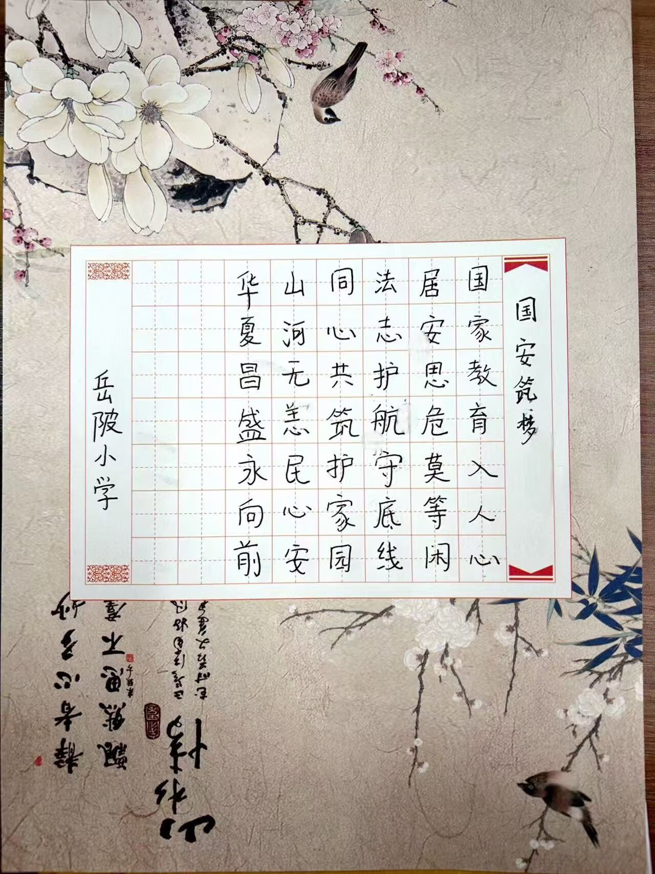 同步开展的国家安全主题书法活动中,同学们用真挚深刻的文字书写对家国的热爱,字里行间满是新时代青少年的责任与担当。