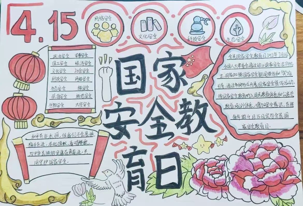 为丰富教育形式,学校面向全体学生开展国家安全主题绘画、手抄报制作活动。同学们用色彩斑斓的画作、构思精巧的手抄报,描绘对国家安全的理解,将家国情怀融入笔墨之间,让国家安全理念通过艺术形式传递给身边每一个人。