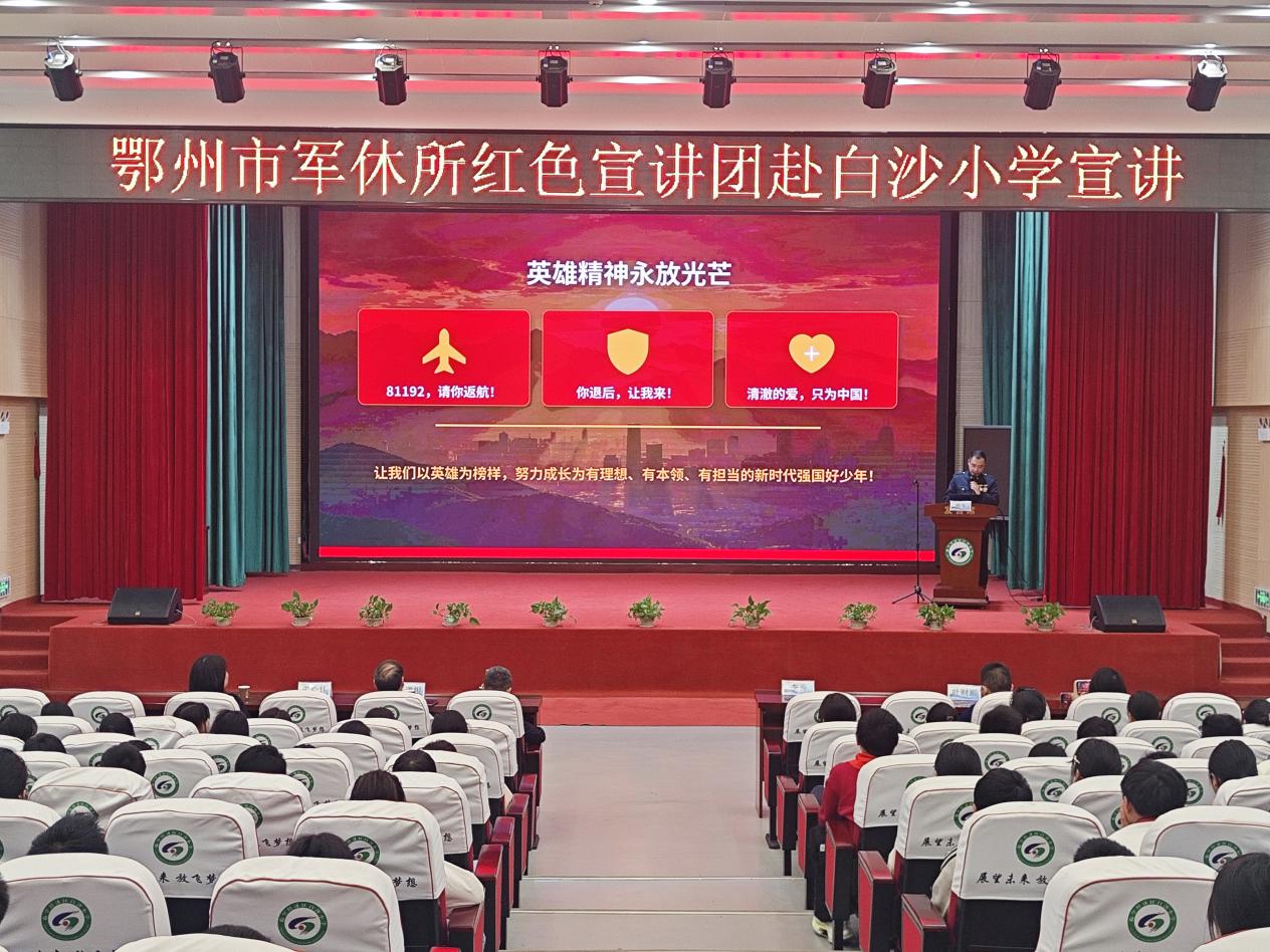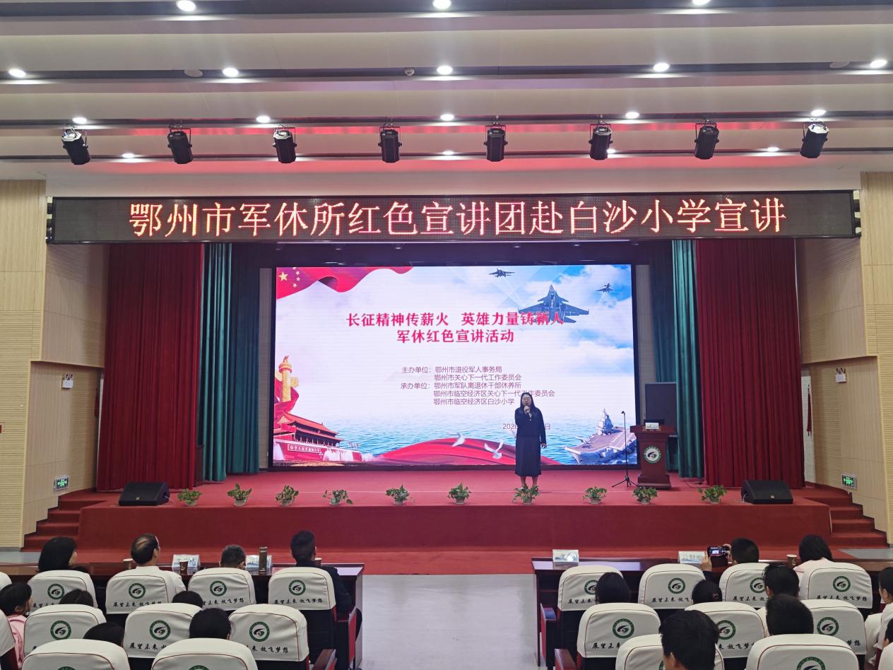 为纪念长征胜利90周年,传承红色基因,厚植青少年爱国情怀,4月16日,由鄂州市退役军人事务局、鄂州市关心下一代工作委员会主办,鄂州市军队离退休干部休养所、鄂州市临空经济区关心下一代工作委员会、鄂州市临空经济区白沙小学承办的“长征精神薪火传 英雄力量铸新人”主题宣讲活动在白沙小学举行。活动通过讲述新时代人民军队英雄故事,引导青少年铭记英雄、崇尚英雄、学习英雄,立志成长为担当民族复兴大任的时代新人。