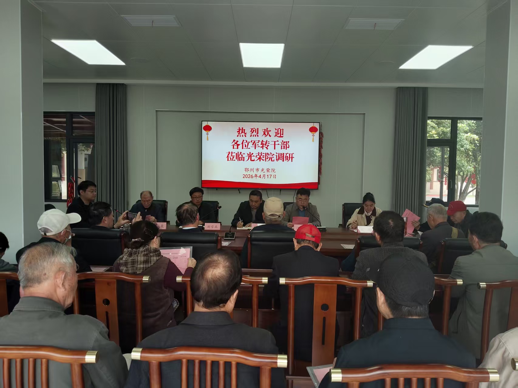 近日,鄂州市企业军转干部一行走进市光荣院,围绕优抚养老与康养服务工作开展实地调研。市退役军人事务局相关部门负责人及市光荣院相关负责同志陪同调研。