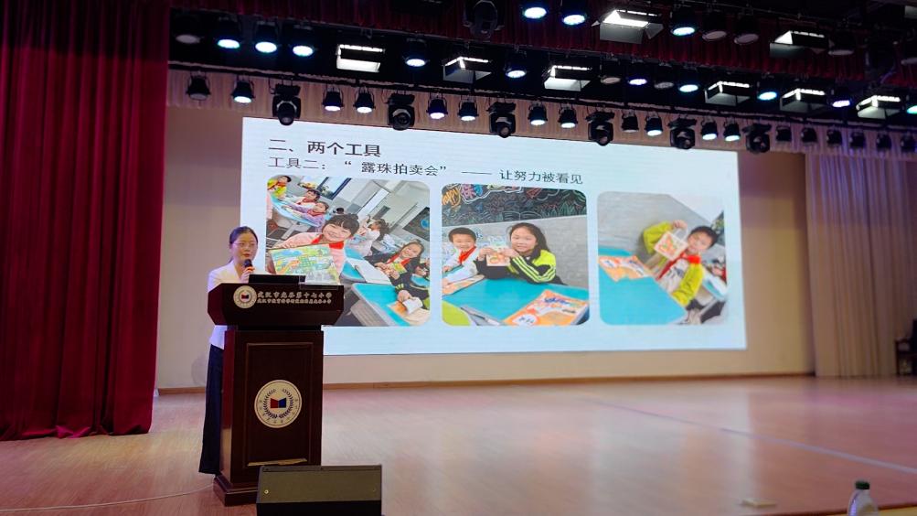 她立足学校“荷润教育”理念,以荷露集、露珠拍卖会为抓手,从情感润泽、过程看见、自主生长三个维度,讲述有温度、可落地、可复制的班级管理经验,用真实案例展现明塘小学特色班建成果,赢得现场掌声不断。