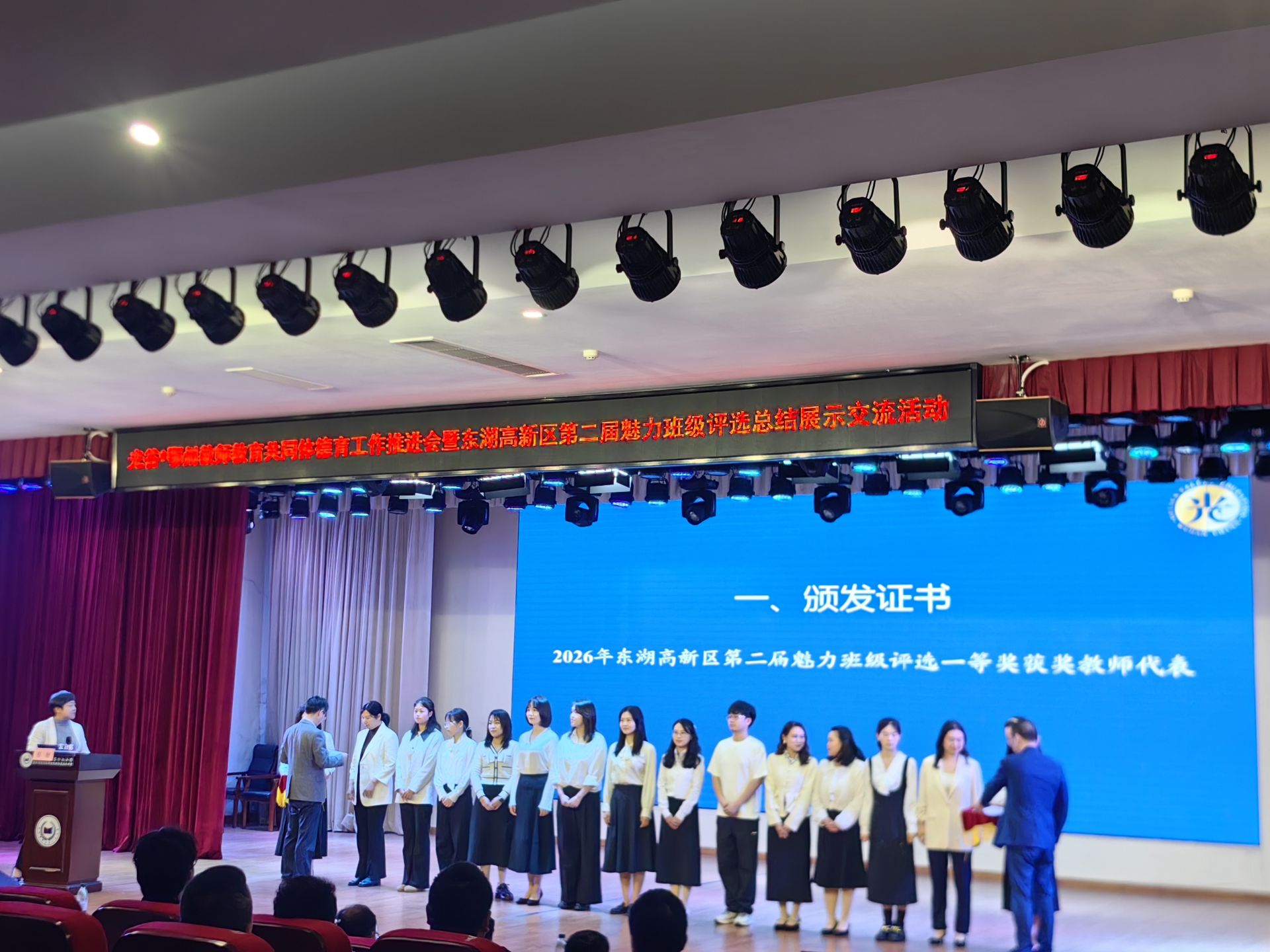 活动流程紧凑丰富。在活动颁奖环节,大会为魅力班级评选获奖教师代表颁发荣誉。东湖高新区教育发展研究院舒晓辉副院长对赛事进行了全面回顾与总结,系统梳理了德育工作成果,明确了班级建设的方向;随后进入经验分享环节,多地优秀班主任与学校代表依次交流治班智慧;最后由专家点评、领导讲话,为区域德育一体化发展指明路径。