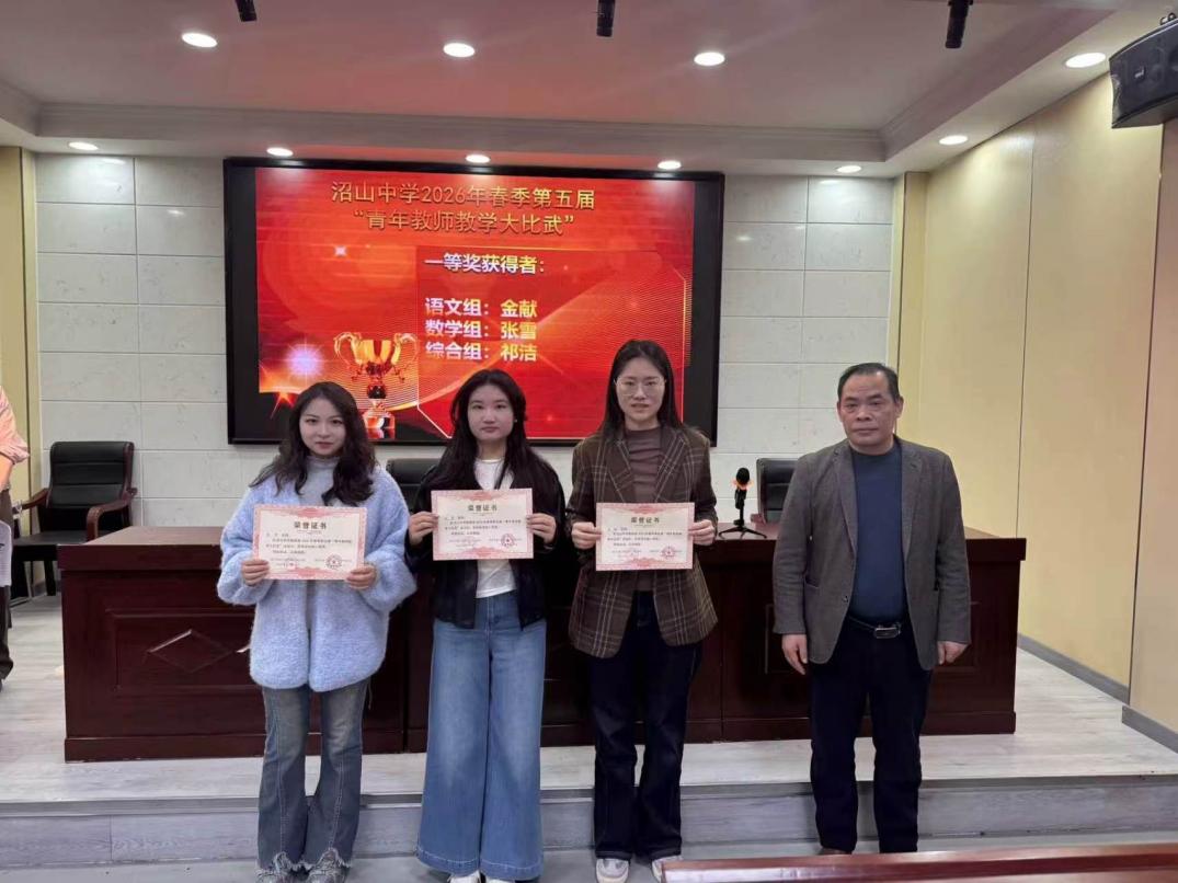 3 月 25 日,沼山中学教联体隆重举行第五届青年教师大比武颁奖典礼。主持人陈芊开场致辞,细数参赛教师的用心筹备与辛勤付出,向到场的各位领导致以诚挚欢迎与谢意。典礼现场依次公布获奖名单,并为获奖教师颁发荣誉证书。