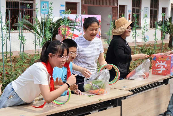 活动现场热闹非凡,两大特色主题活动依次开展,孩子们沉浸其中,尽享阅读与实践的快乐。最受大家欢迎的 “以书换蔬” 趣味活动 火热开场。同学们纷纷带来家中闲置的旧书,根据书本价值兑换游戏圈,化身小小 “套圈手” 参与趣味套圈。大家瞄准目标、轻掷圆环,套中新鲜蔬菜便可亲手带回家,用阅读换收获,用书香换绿意。书本传递知识,蔬菜承载烟火,孩子们在互动中体会分享的快乐,感受劳动与美食的美好,现场欢声笑语不断。