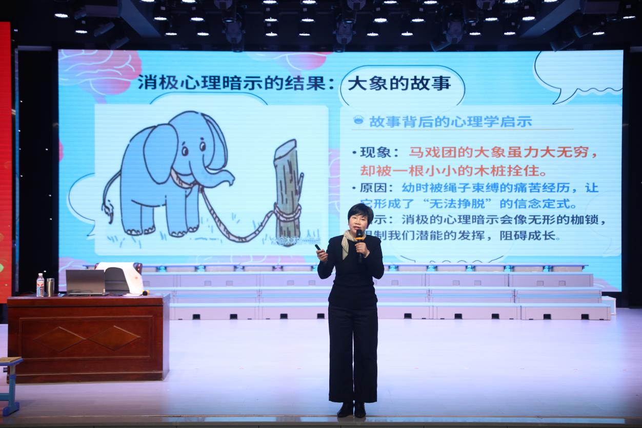 方老师用鲜活的故事和短片,把“心理暗示”“罗森塔尔效应”化作孩子们听得懂的悄悄话,并传授“定为—装为—成为”的成长秘诀。她说:“每一个孩子心里都藏着一颗太阳,信念就是把它叫醒的声音。”
