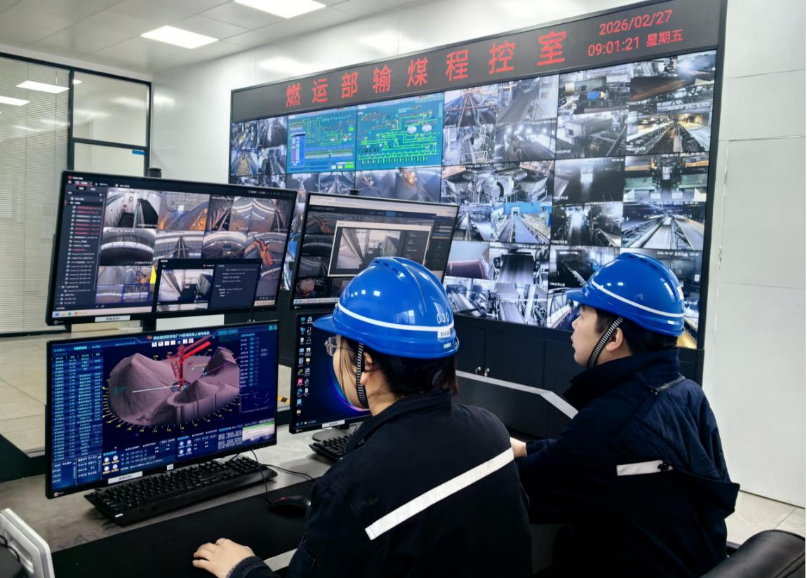 “以前我们需要爬上6层楼高的驾驶室,现在只需坐在中控室里点一点鼠标,就能实现精准作业。”输煤运行人员指着大屏幕上的三维数字孪生煤场模型介绍道。