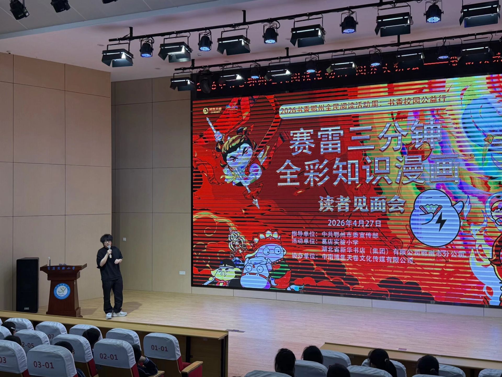 春风送暖,书香满园。为弘扬经典名著文化,让阅读变得轻松有趣,4月27日,“哪吒归来,封神再起!漫画解读名著,让学习更有趣” 主题分享会在葛店经开区实验小学温情落幕。本次活动由葛店经开区实验小学、湖北省新华书店集团鄂州市分公司等联合举办,特邀知名作家赛雷亲临校园,带领孩子们以漫画为钥,打开名著世界的大门。