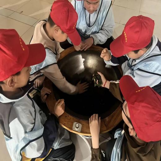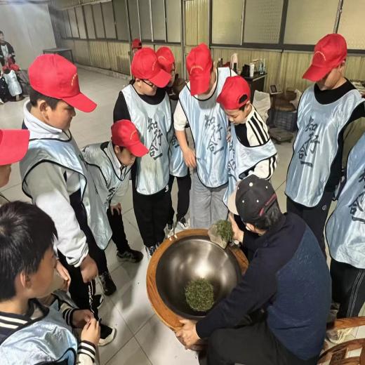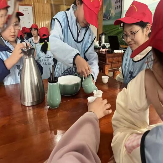 从青翠茶园到炒茶坊,同学们在非遗师傅的指导下,亲手参与萎凋、杀青、揉捻、烘干,见证一片树叶到一盏香茗的奇妙旅程。最后的现代茶艺美学课,则让孩子们在“和敬清寂”的茶道精神中,品味传统文化的悠长韵味。