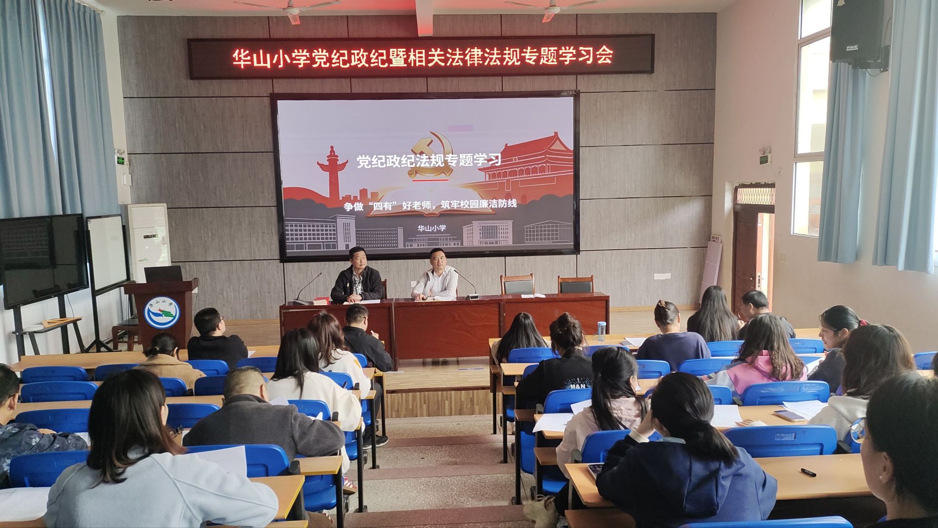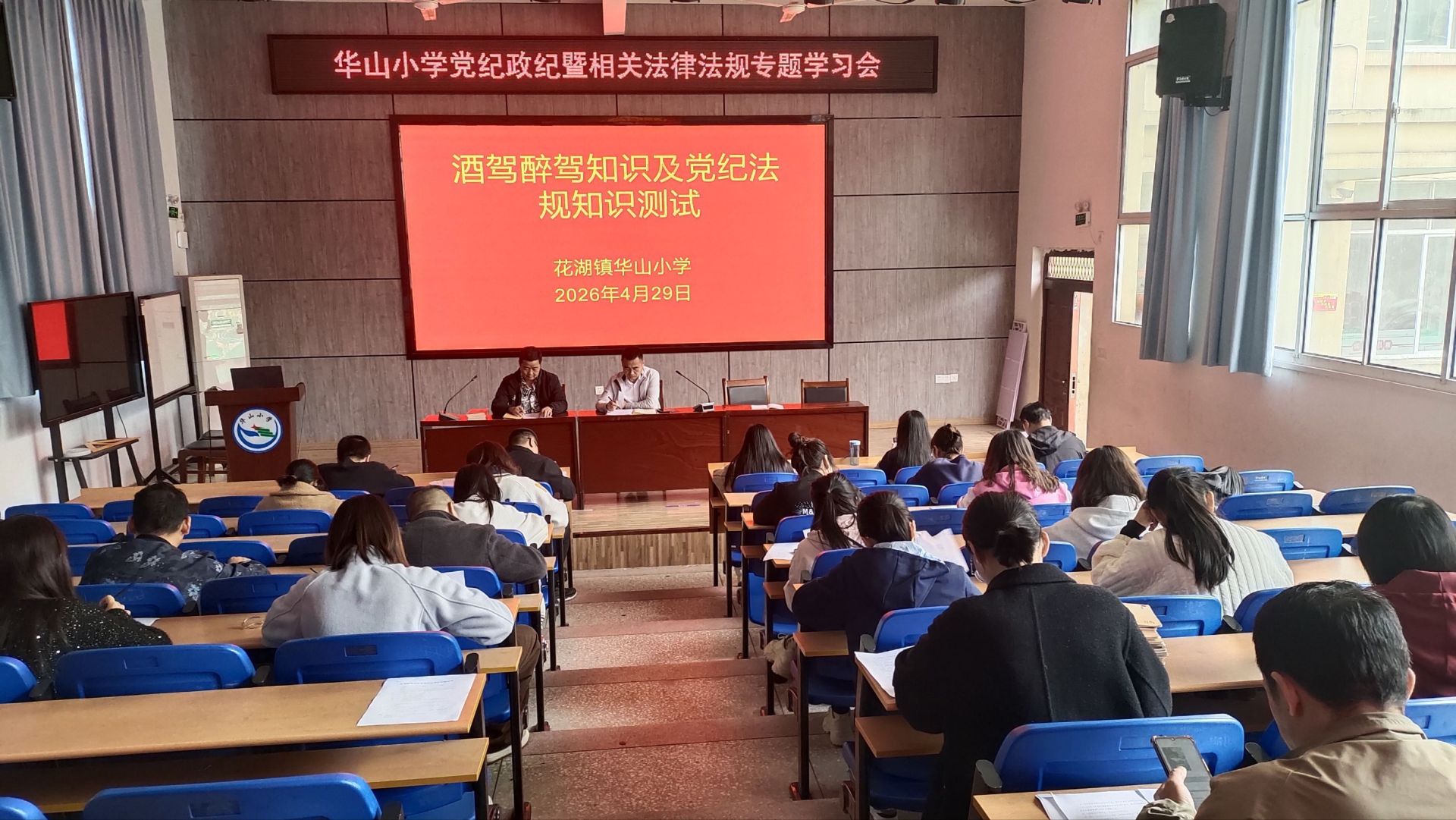 为进一步强化全体教职工的纪律意识、法治观念与师德修养,筑牢拒腐防变和安全出行的思想防线,4月29日,花湖镇华山小学组织全体教职工召开党纪政纪暨相关法律法规专题学习会,以“警示+学习+测试”的闭环形式,推动纪律教育入脑入心。