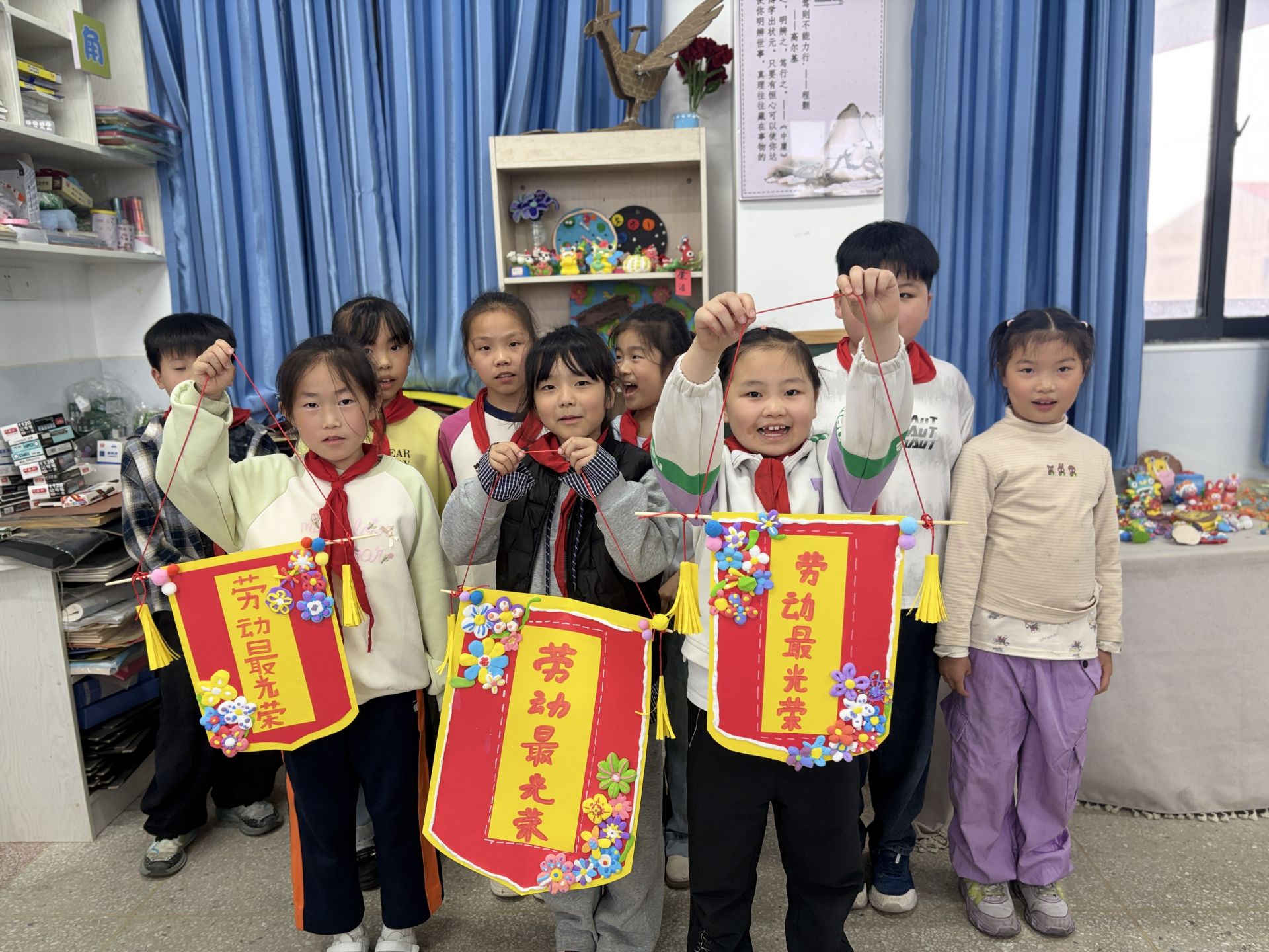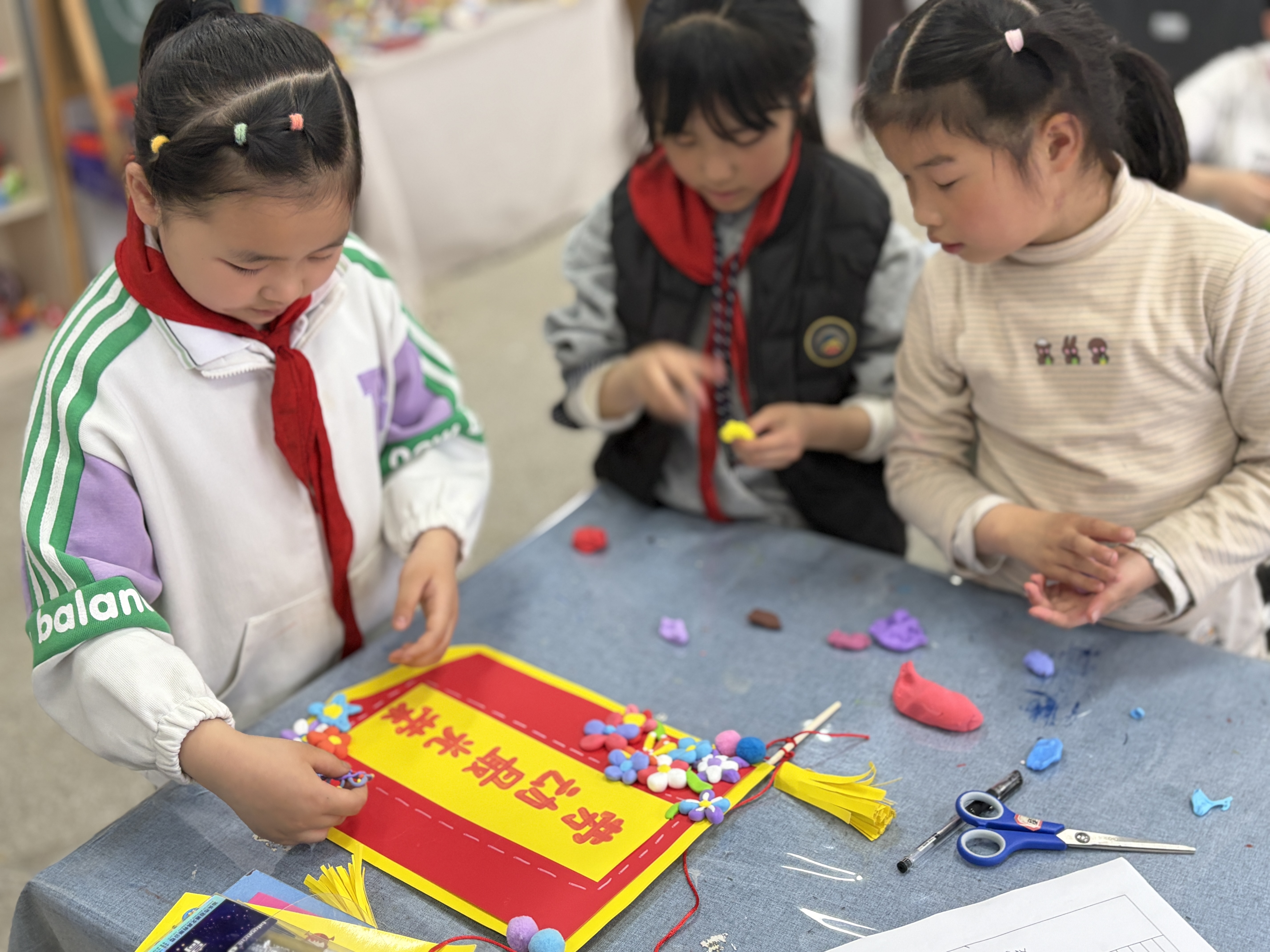 揉、捏、粘、贴,每一个动作都饱含专注,每一处细节都藏着童真。小社员们互帮互助,一起商量造型、搭配色彩,在动手实践中感受手工创作的乐趣,更在心底埋下尊重劳动、感恩奉献的种子。一面面色彩鲜艳、创意十足的手工锦旗,是孩子们用稚嫩双手打造的礼物,承载着他们对各行各业劳动者最真挚的敬意与最美好的祝福。