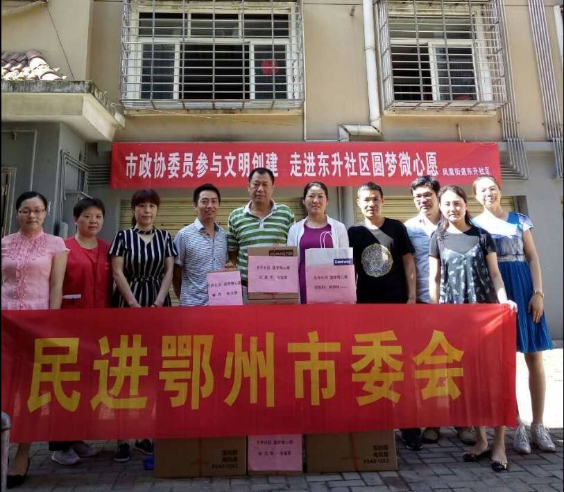 7月13日,鄂州民进界别“政协委员进社区”主题活动走进鄂城区东升社区,同心共建文明社区。民进鄂州市委主委谈春光、副主委李志武以及张志轩、高作绪、李波、吴小红、张琳等7名鄂州市政协委员参加了此次活动。