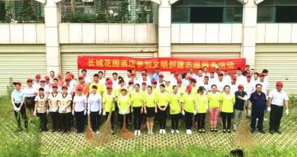 7月7日上午,长城花园大酒店组织百名员工到凤凰街道文汇社区,开展文明创建志愿服务义务劳动。员工们在酒店董事长李惠强的带动下,冒着酷暑、顶着高温与文汇社区党员干部一道,清理文汇社区莲花雅院小区外侧长廊卫生。